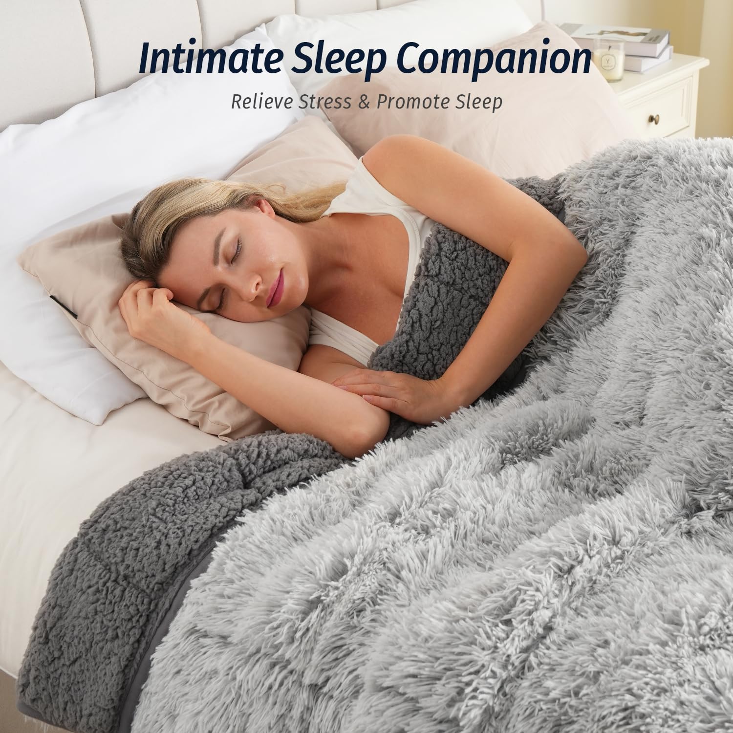 - Punctiliously Crafted: The shaggy faux fur weighted blanket integrates incredible softness and smoothness with ultimate warmth using its premium plush faux fur PV fleece top and high-end 220 GSM Sherpa reverse which are sewn together with decorative edging for a neat look and enhanced durability